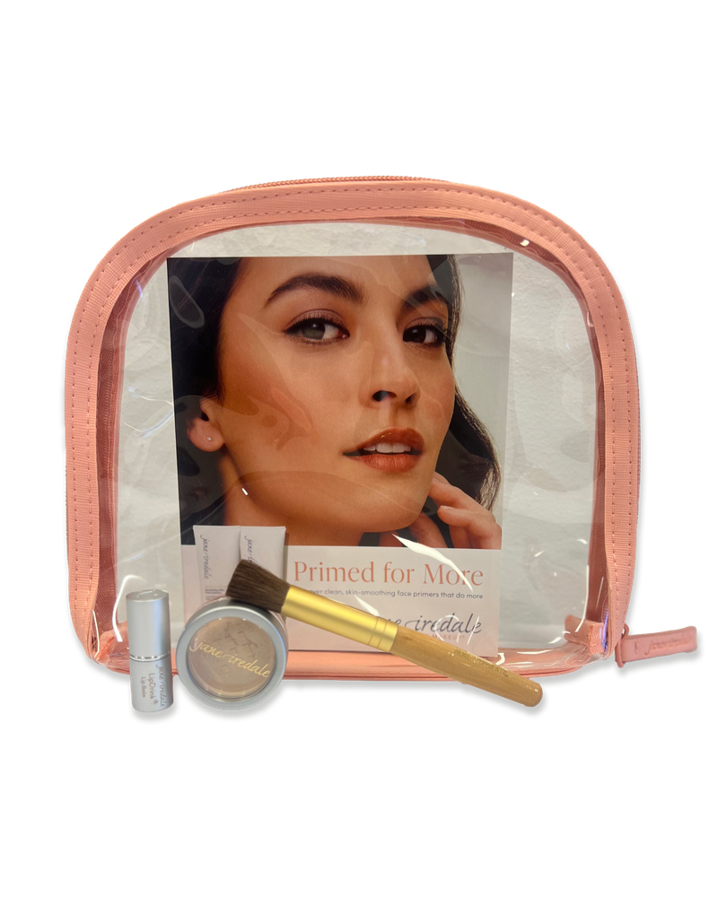 Handla 2 valfria Jane Iredale-produkter, få en necessär med resestorlekar (värde 300 kr): Smooth Affair Primer, Amazing Base & LipDrink.